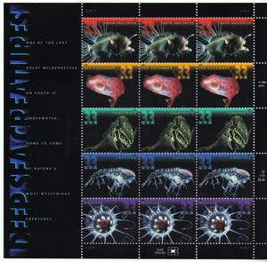 Deep Sea Creatures Complete Sheet of Fifteen 33 Cent Postage Stamps Scott 3439