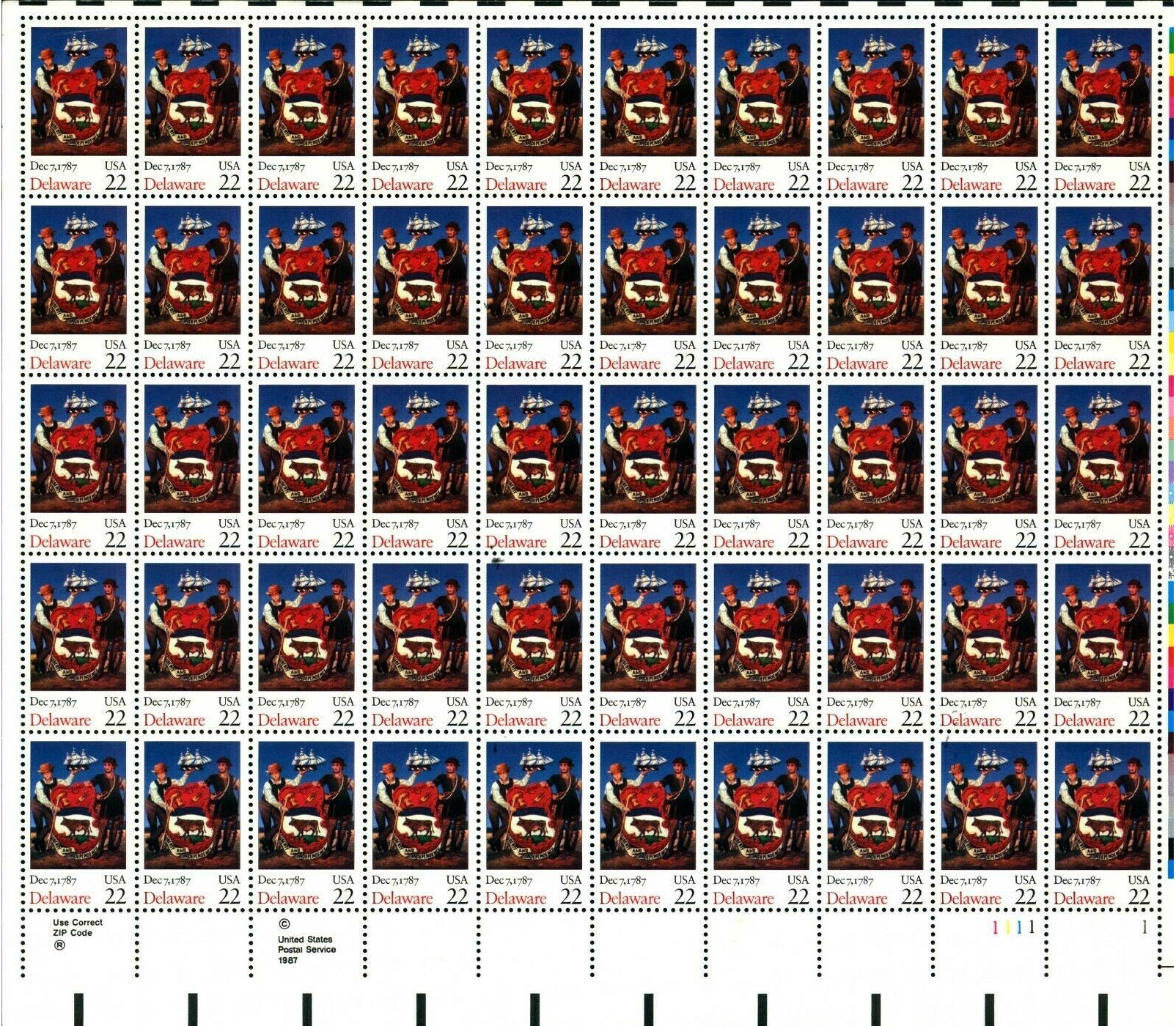 Delaware Statehood Sheet of Fifty 22 Cent Postage Stamps Scott 2336