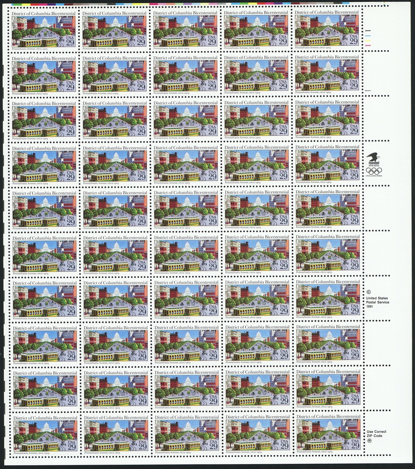 District of Columbia Bicentennial Sheet of Fifty 29 Cent Stamps Scott 2561