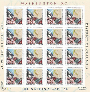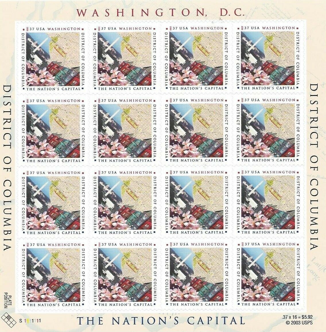 District of Columbia Sheet of Twenty 37 Cent Postage Stamp Scott 3813