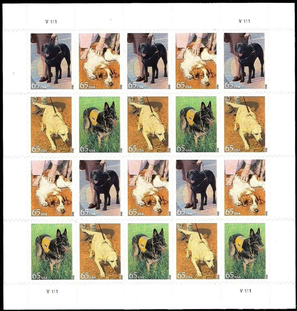 Dogs at Work Sheet of Twenty 65 Cent Postage Stamps Scott 4604-07