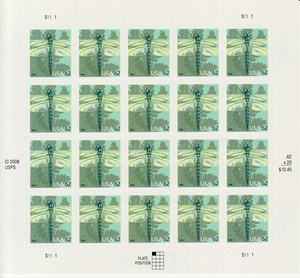 Dragonfly Pane Sheet of Twenty 62 Cent Postage Stamps Scott 4267