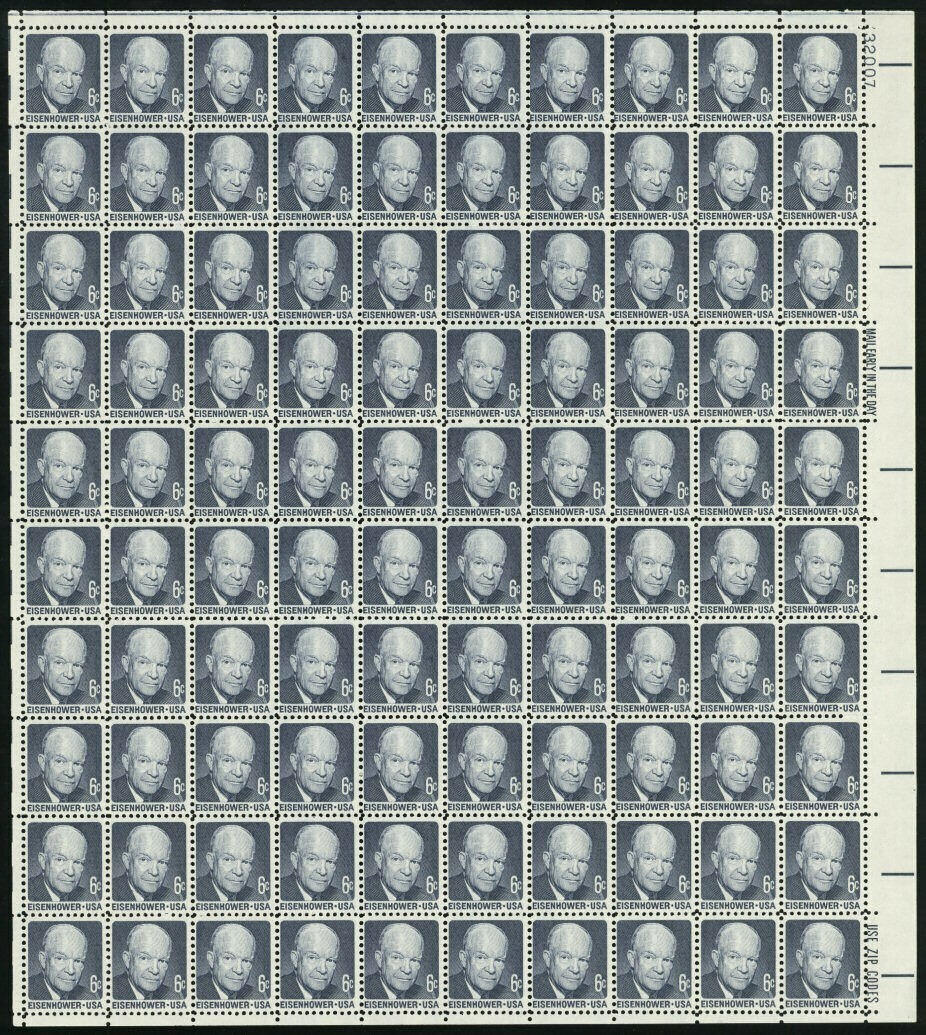 Dwight David Eisenhower Sheet of 100 Six Cent Postage Stamps Scott 1393