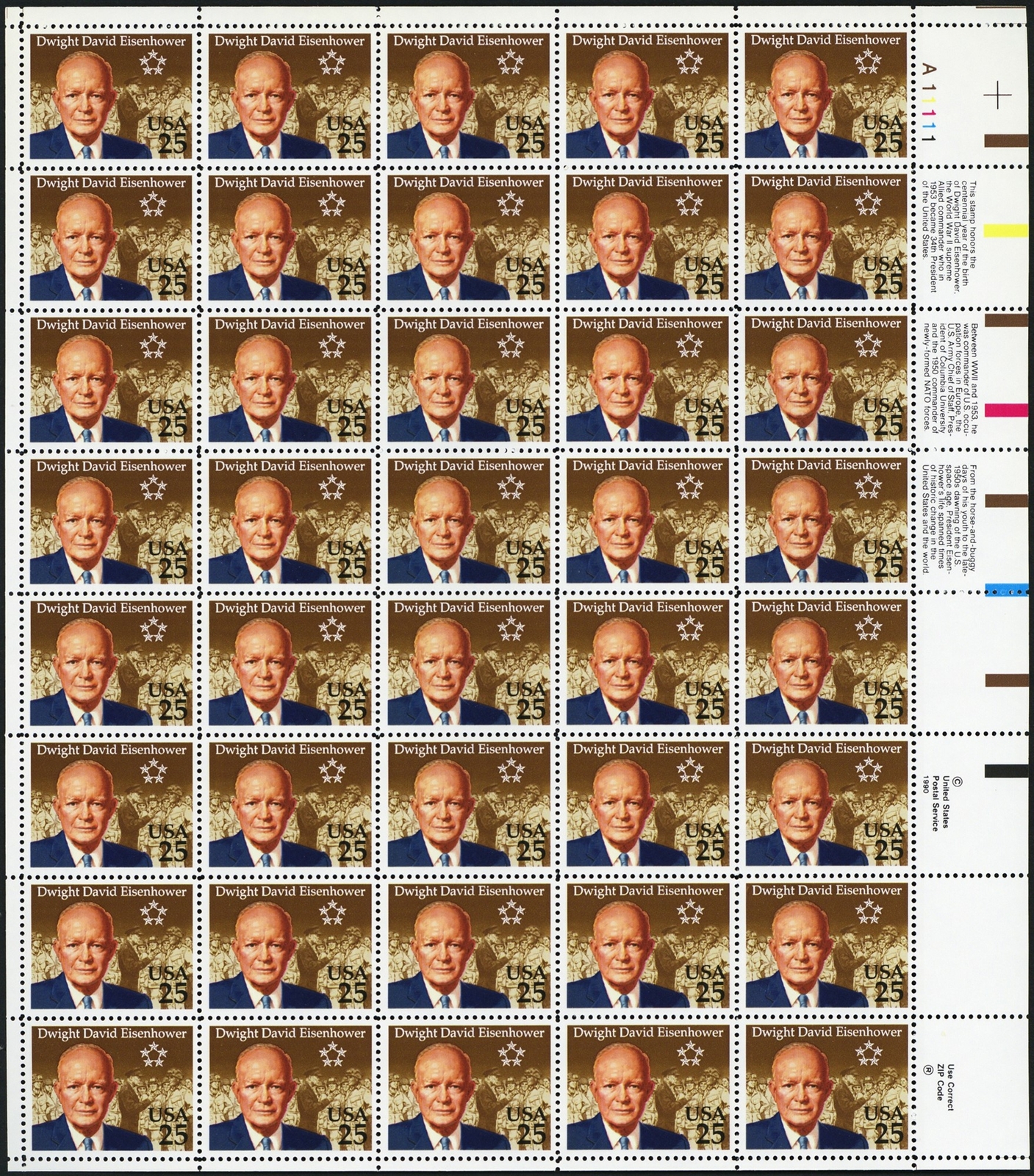 Dwight Eisenhower Sheet of Forty 25 Cent Postage Stamps Scott 2513