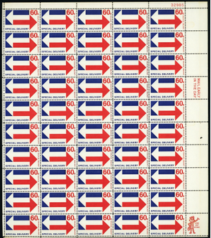 E23, Mint VF Sheet of Fifty 60¢ Special Delivery Stamps - Stuart Katz