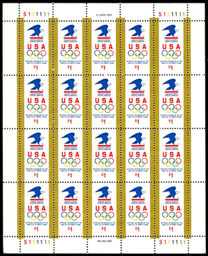 Eagle And Olympic Rings Sheet of Twenty One Dollar Postage Stamps Scott 2539