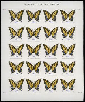 Eastern Tiger Swallowtail Butterfly Pane of Twenty Postage Stamps Scott 4999
