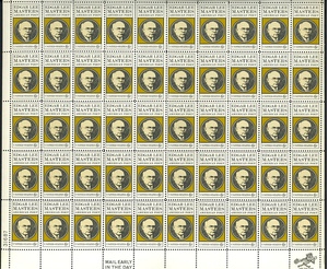 Edgar Lee Masters Poet Sheet of Fifty 6 Cent Postage Stamps Scott 1405