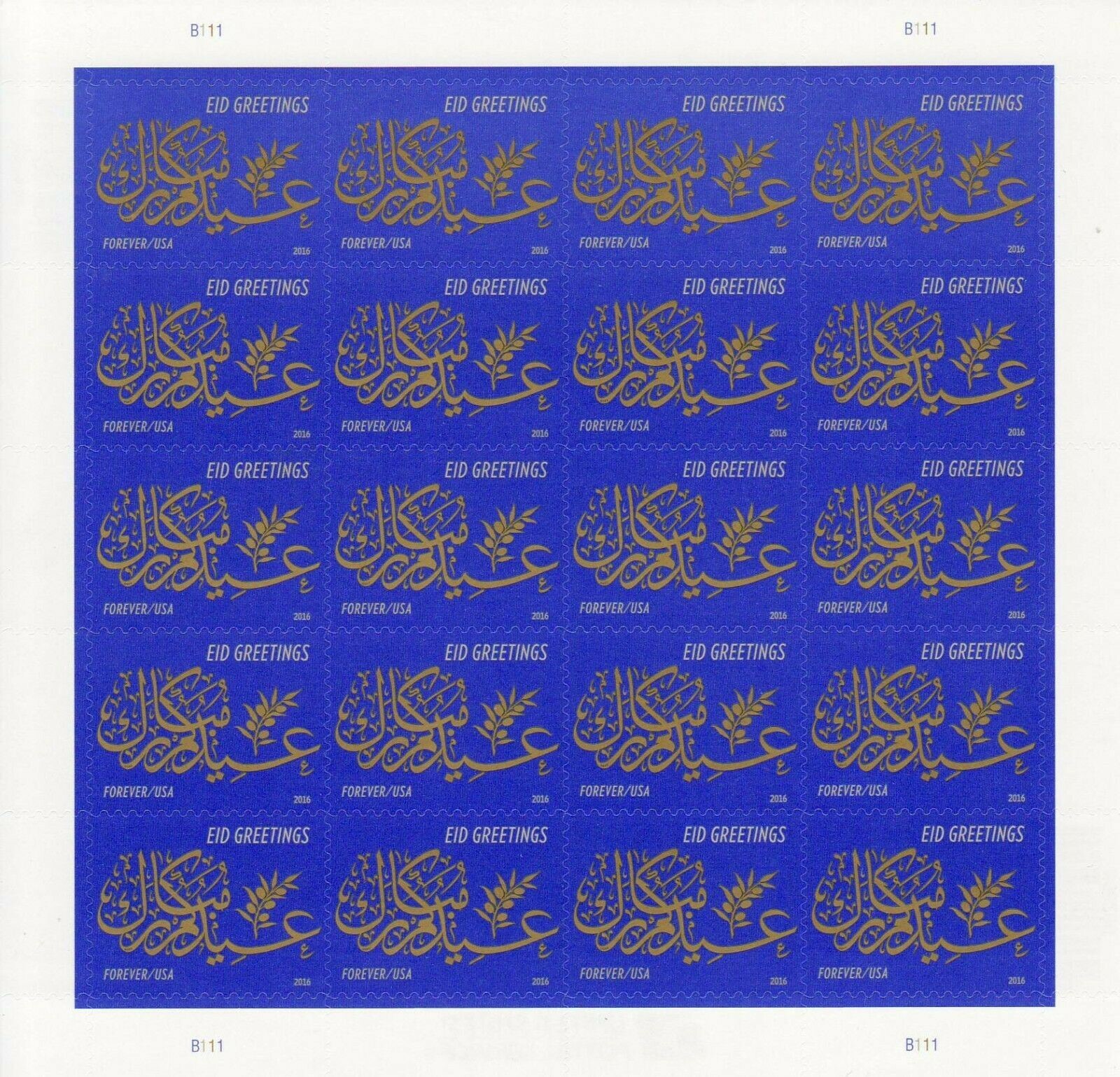 EID Greetings Sheet of 20 Current Rate Postage Stamps Scott 5092
