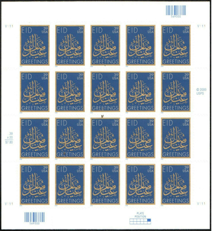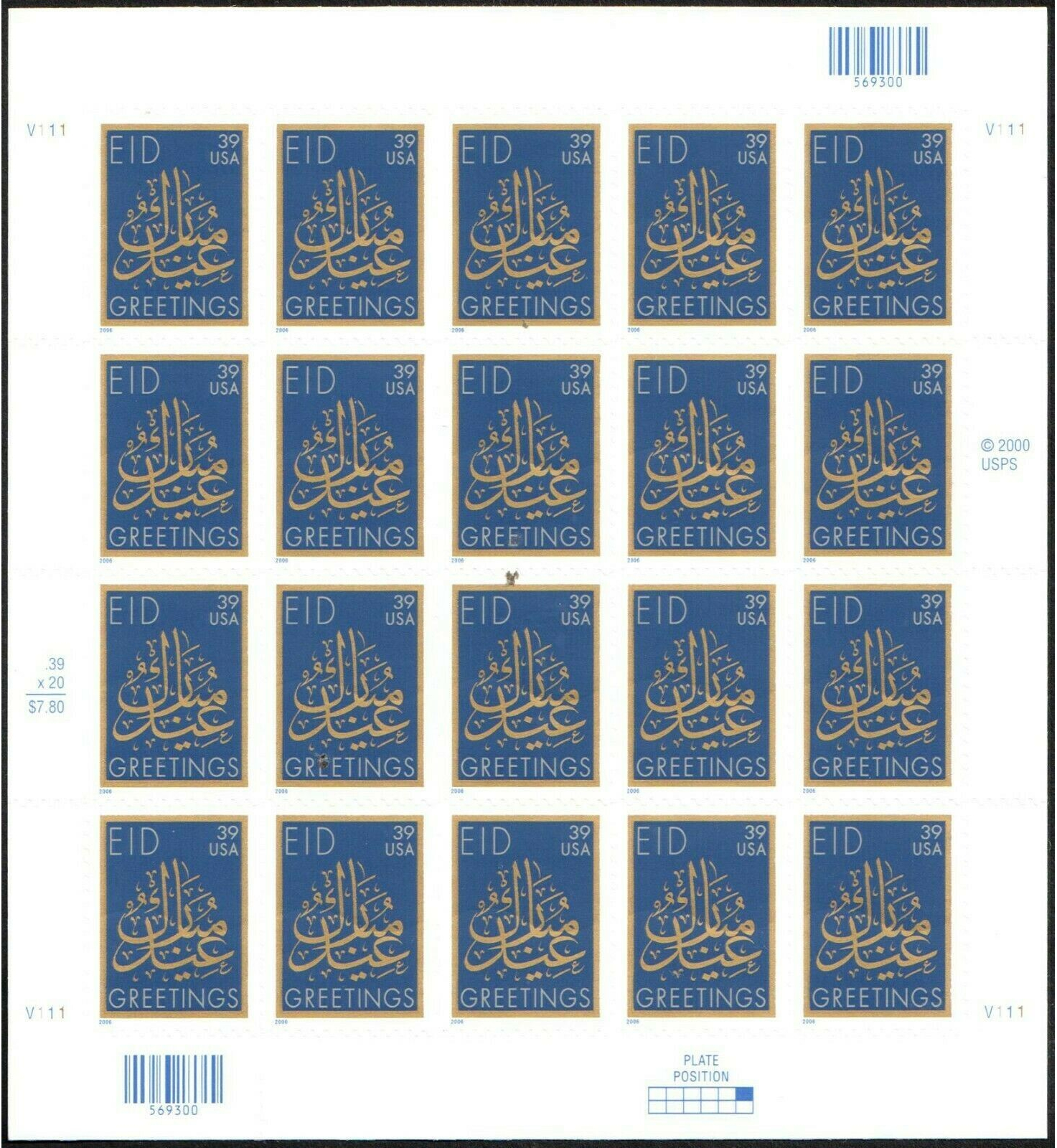 Eid Ramadan Pane of Twenty 39 Cent Postage Stamps Scott 4117
