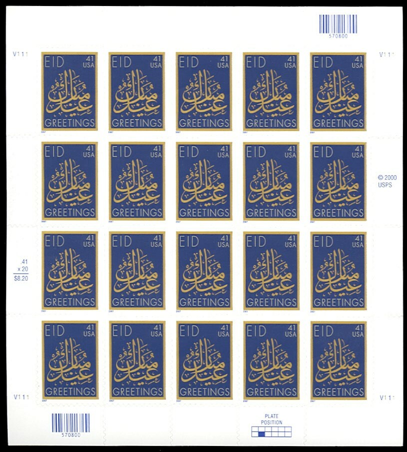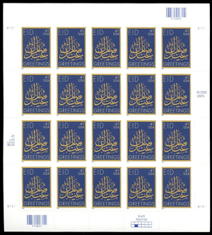 Eid Ramadan Pane of Twenty 41 Cent Postage Stamps Scott 4202