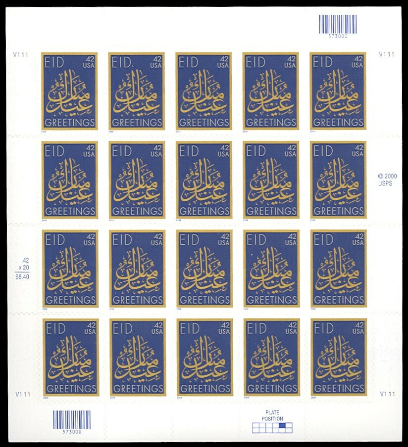 Eid Ramadan Pane of Twenty 42 Cent Postage Stamps Scott 4351