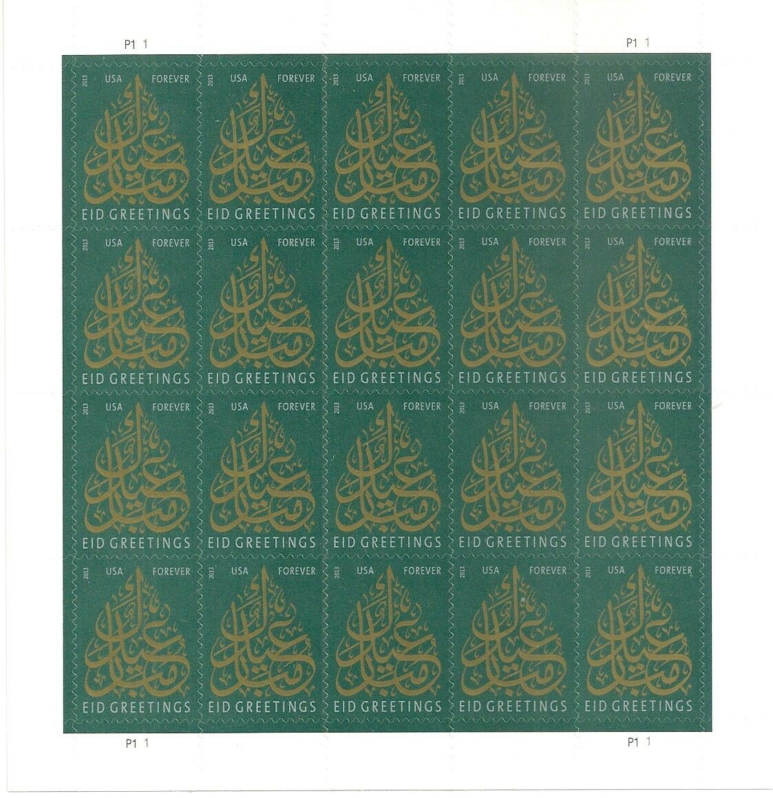 EID Sheet of 20 Current Rate Postage Stamps Scott 4800