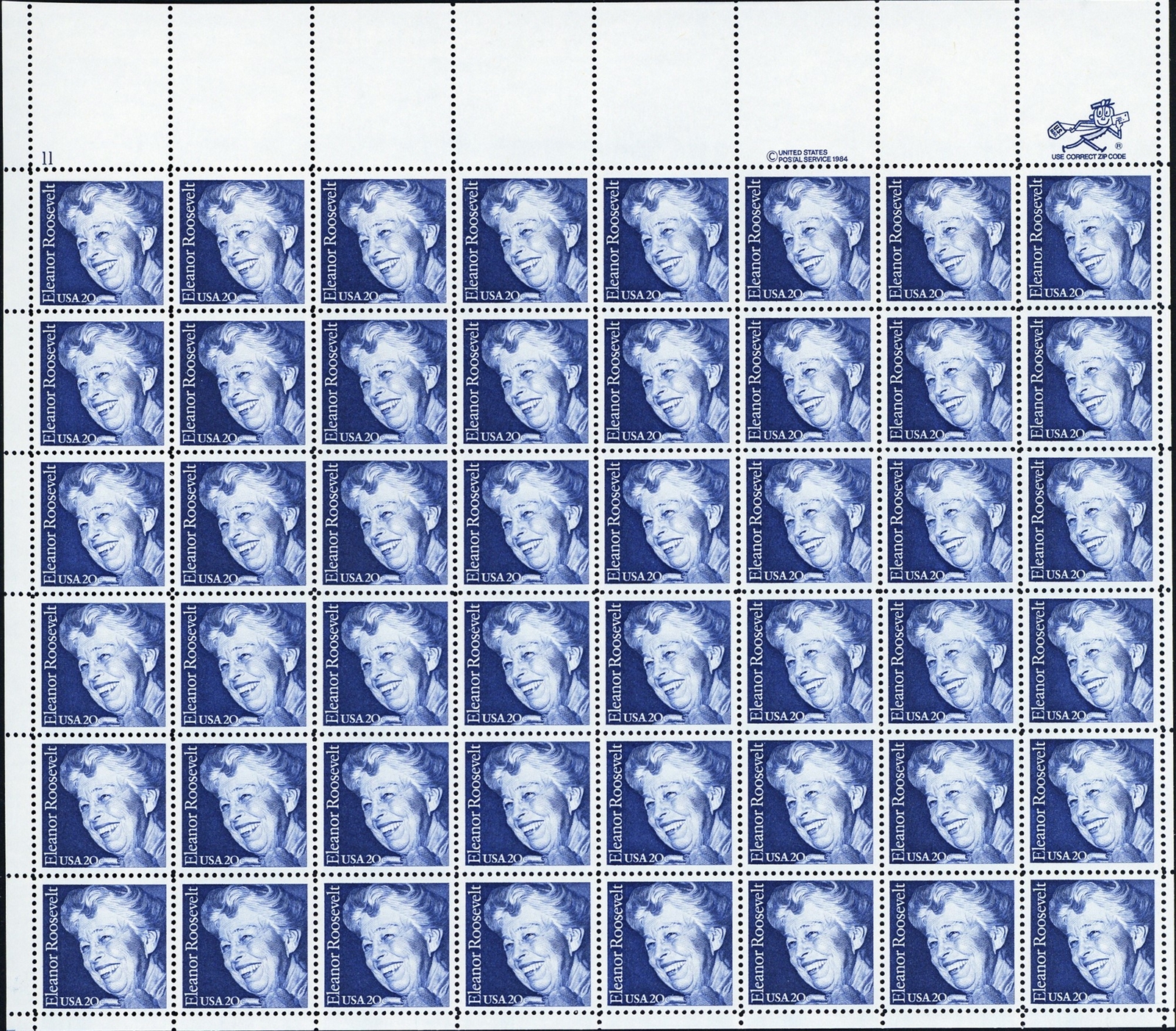 Eleanor Roosevelt of Forty Eight 20 Cent Postage Stamps Scott 2105