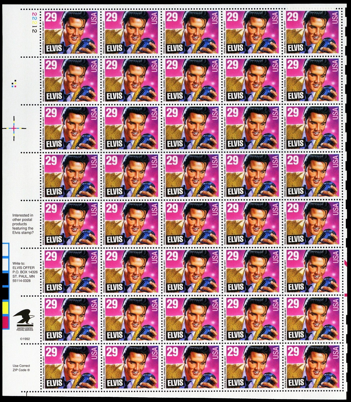 Elvis Presley Complete Sheet of Forty 29¢ Stamps Scott 2721 - Stuart Katz