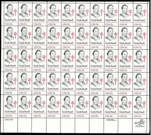 Emily Bissell Full 15 cent Sheet of 50 Stamps Scott 1823