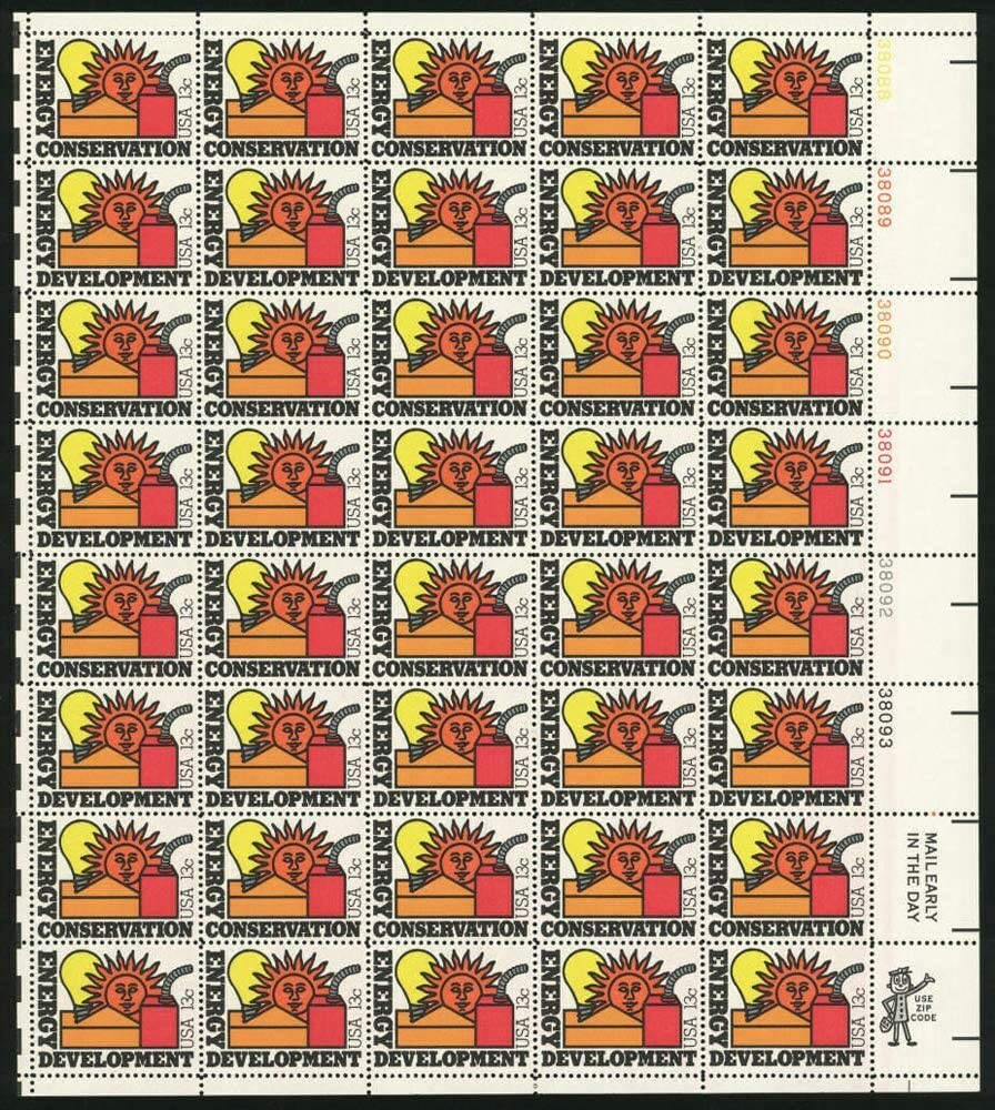 Energy Sheet of Forty 13 Cent Postage Stamps Scott 1723-24