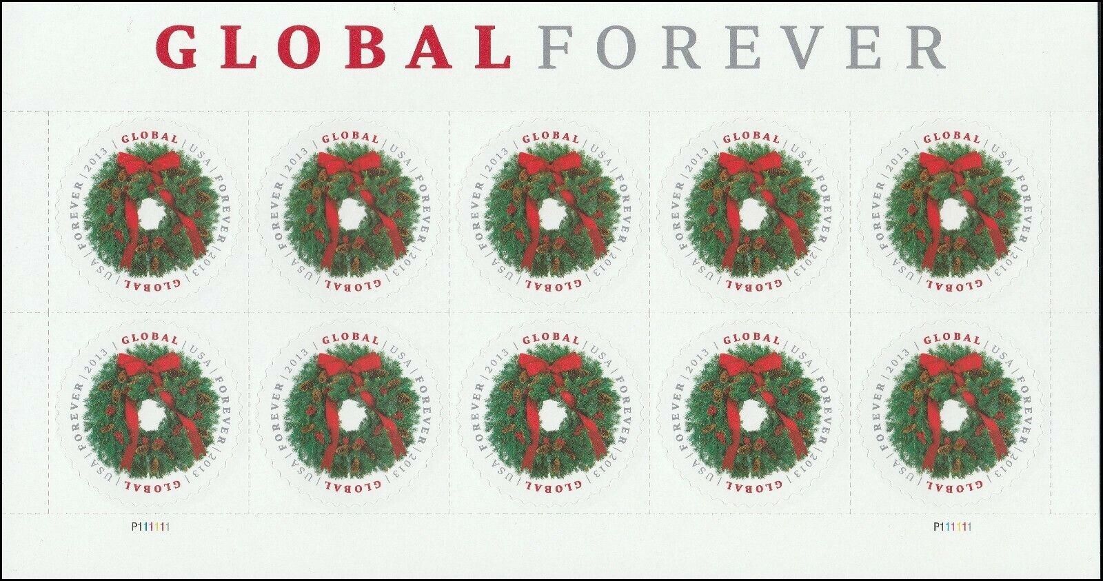 Evergreen Wreath Global Sheet of Ten - International Stamps Scott 4814a