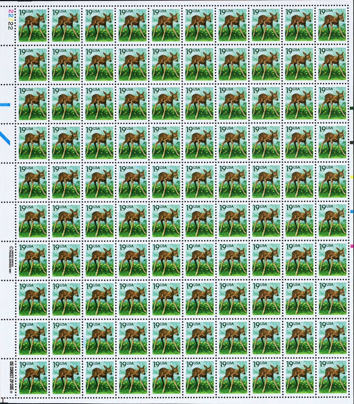 Fawn Sheet of One Hundred 19 Cent Postage Stamps Scott 2479