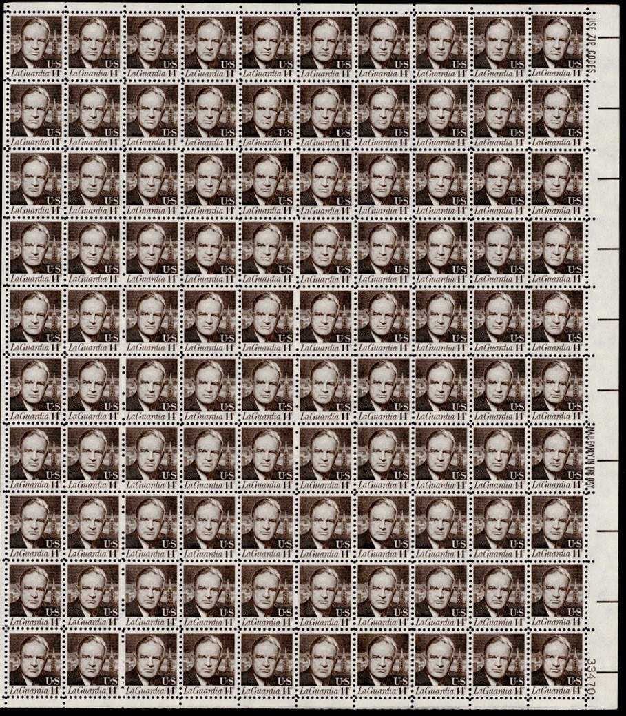 Fiorello Laguardia Sheet of 100 - 14 Cent Postage Stamps Scott 1397
