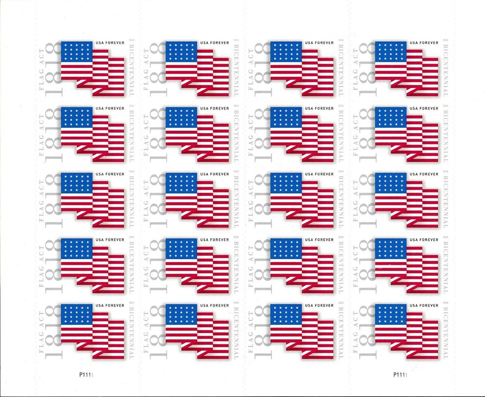 Flag Act of 1818 Full Sheet of 20 Current Rate Postage Stamps Scott 5284