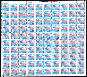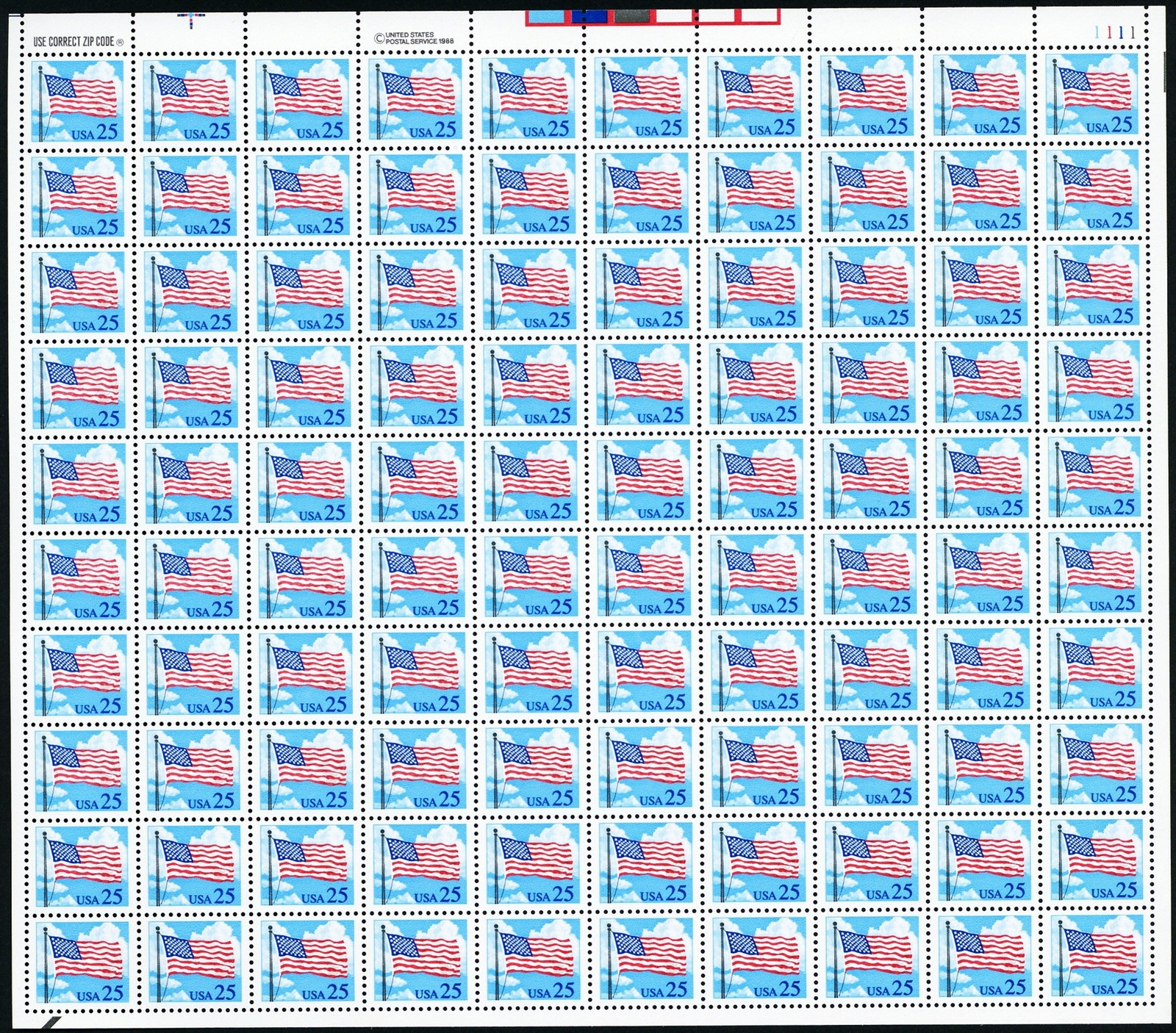 Flag & Clouds Sheet of One Hundred 25 Cent Postage Stamps Scott 2278