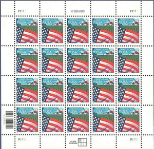 Flag Over Farm Sheet of Twenty 34 Cent Postage Stamps Scott 3448