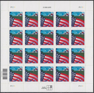 Flag Over Farm Sheet of Twenty 34 Cent Postage Stamps Scott 3449