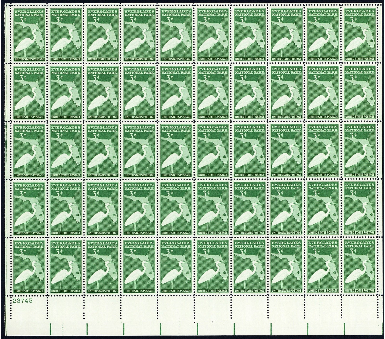 Florida Everglades Sheet of Fifty 3 Cent Postage Stamps Scott 952
