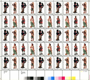 Folk Art Wood Carved Figurines Sheet of Fifty 22 Cent Stamps Scott 2240-43