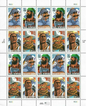 Folk Heroes Sheet of Twenty 32 Cent Postage Stamps Scott 3083-86