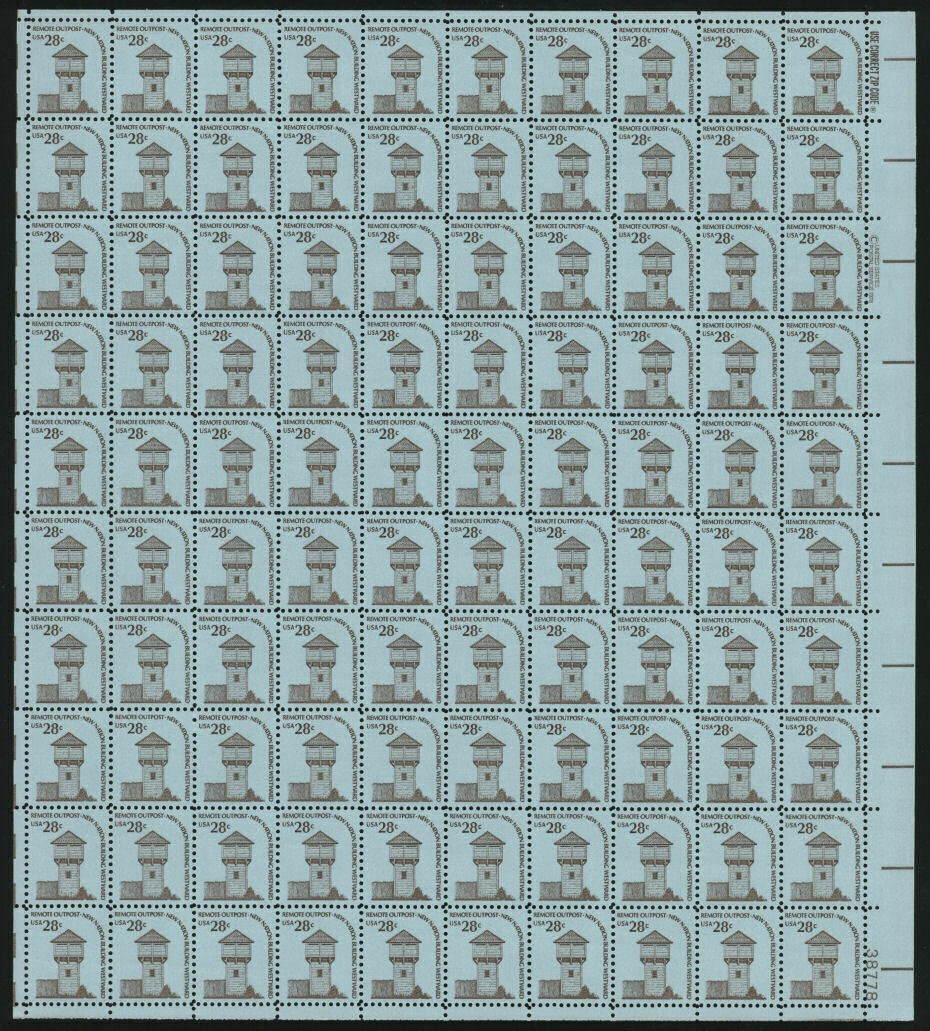 Fort Nisqually Complete Sheet of One Hundred 28 Cent Stamps Scott 1604