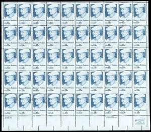Frances Perkins Sheet of Fifty 15 Cent Postage Stamps Scott 1821