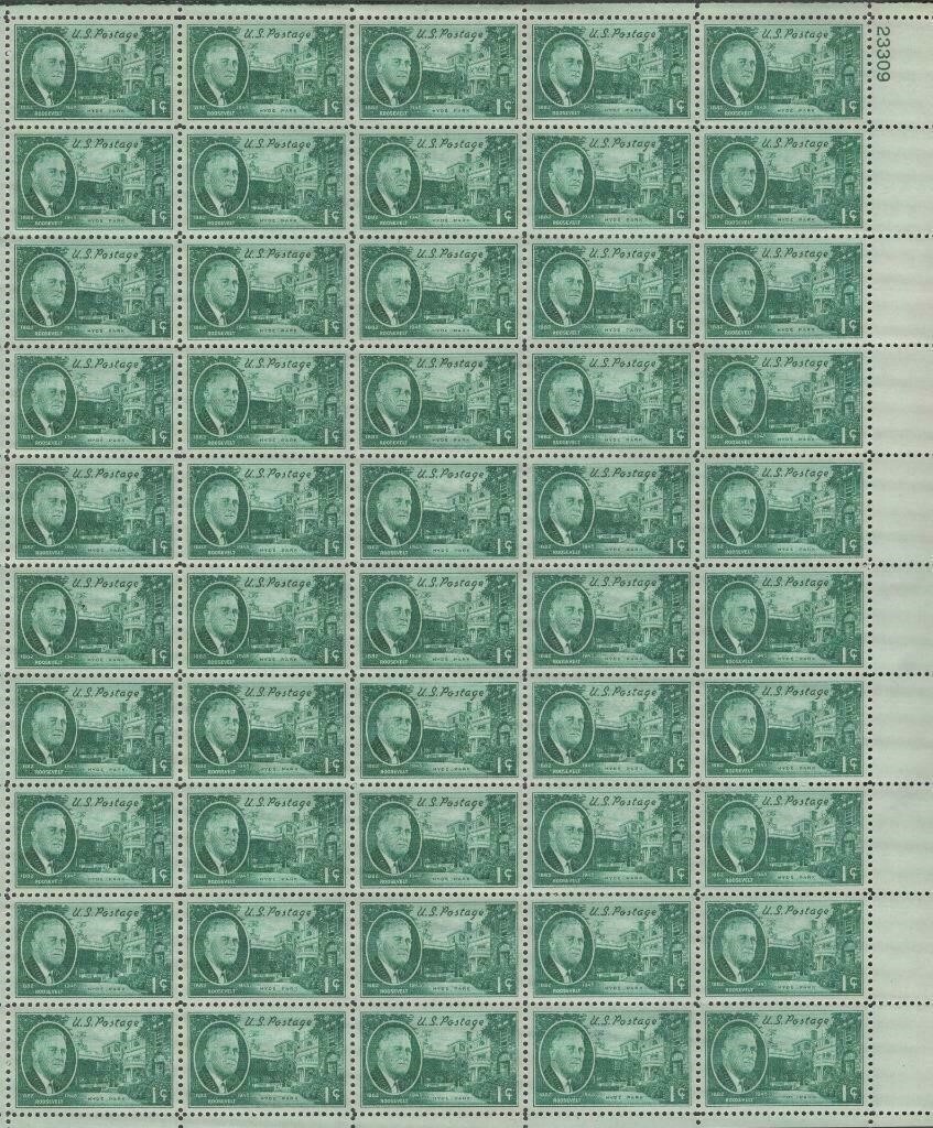 Franklin D. Roosevelt Sheet of Fifty 1 Cent Postage Stamps Scott 930
