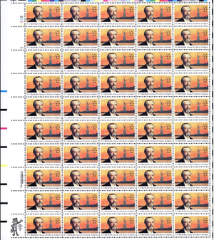 Frederic Auguste Bartholdi Sheet of Fifty 22 Cent Postage Stamps Scott 2147