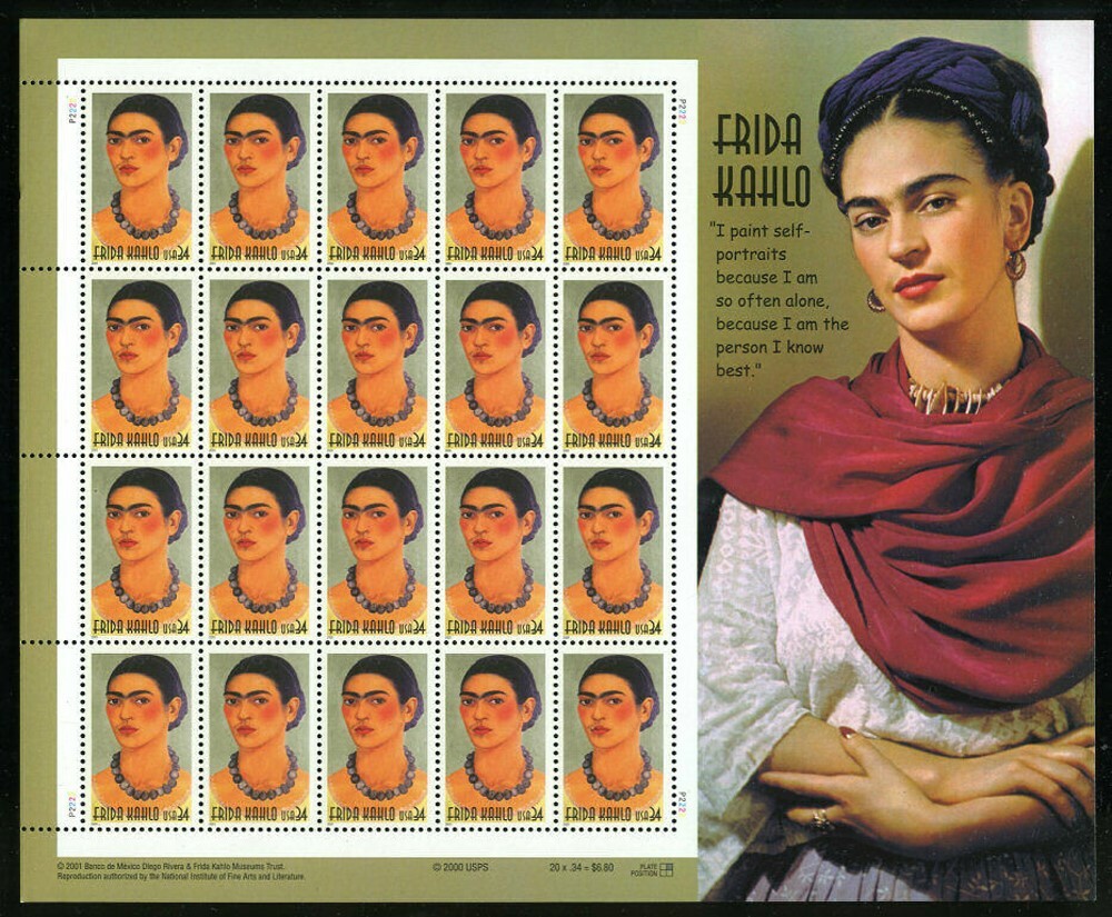 Frida Kahlo Complete Sheet of Twenty 34 Cent Stamps Scott 3509