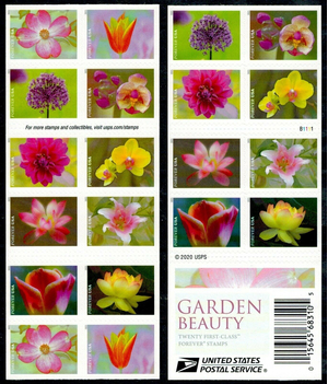Garden Beauty Booklet Pane of 20 Current Rate Postage Stamps Scott 5567a