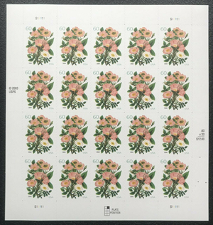 Garden Botanical Sheet of Twenty 60 Cent Postage Stamps Scott 3837