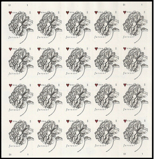 GENUINE Vintage Rose Pane of 20 Mint Current Rate Wedding Stamps Scott 4959