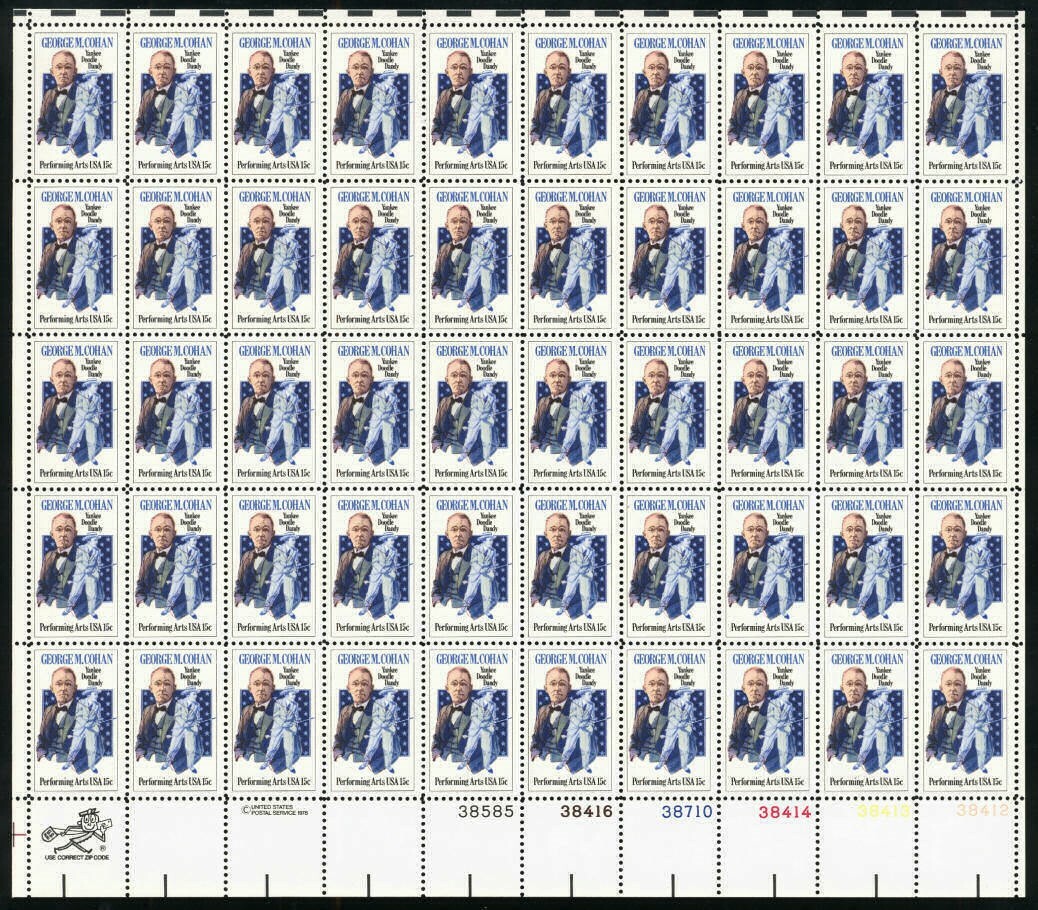George M. Cohan Sheet of Twenty 15 Cent Postage Stamps Scott 1756