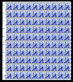 George Washington Sheet of 100 - 5 Cent Postage Stamps Scott 1283B