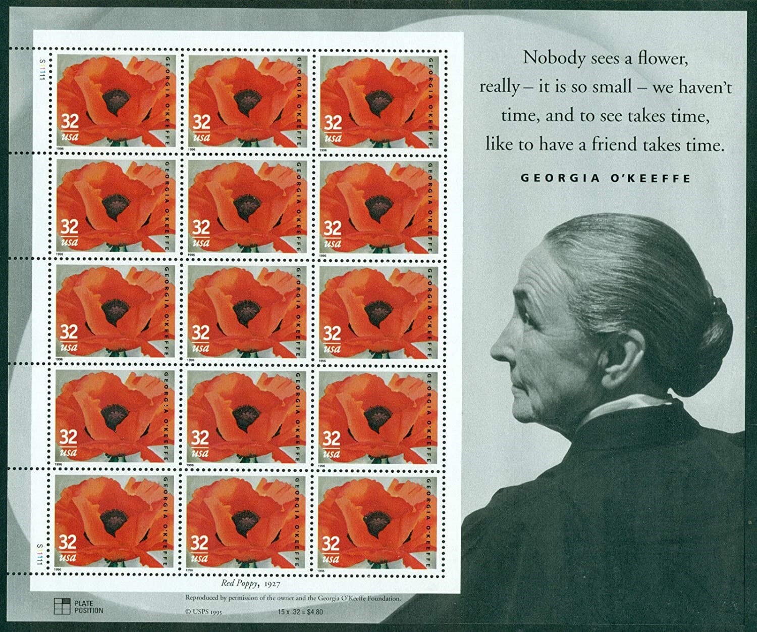Georgia O'Keeffe Full Sheet of Fifteen 32 Cent Postage Stamps Scott 3069