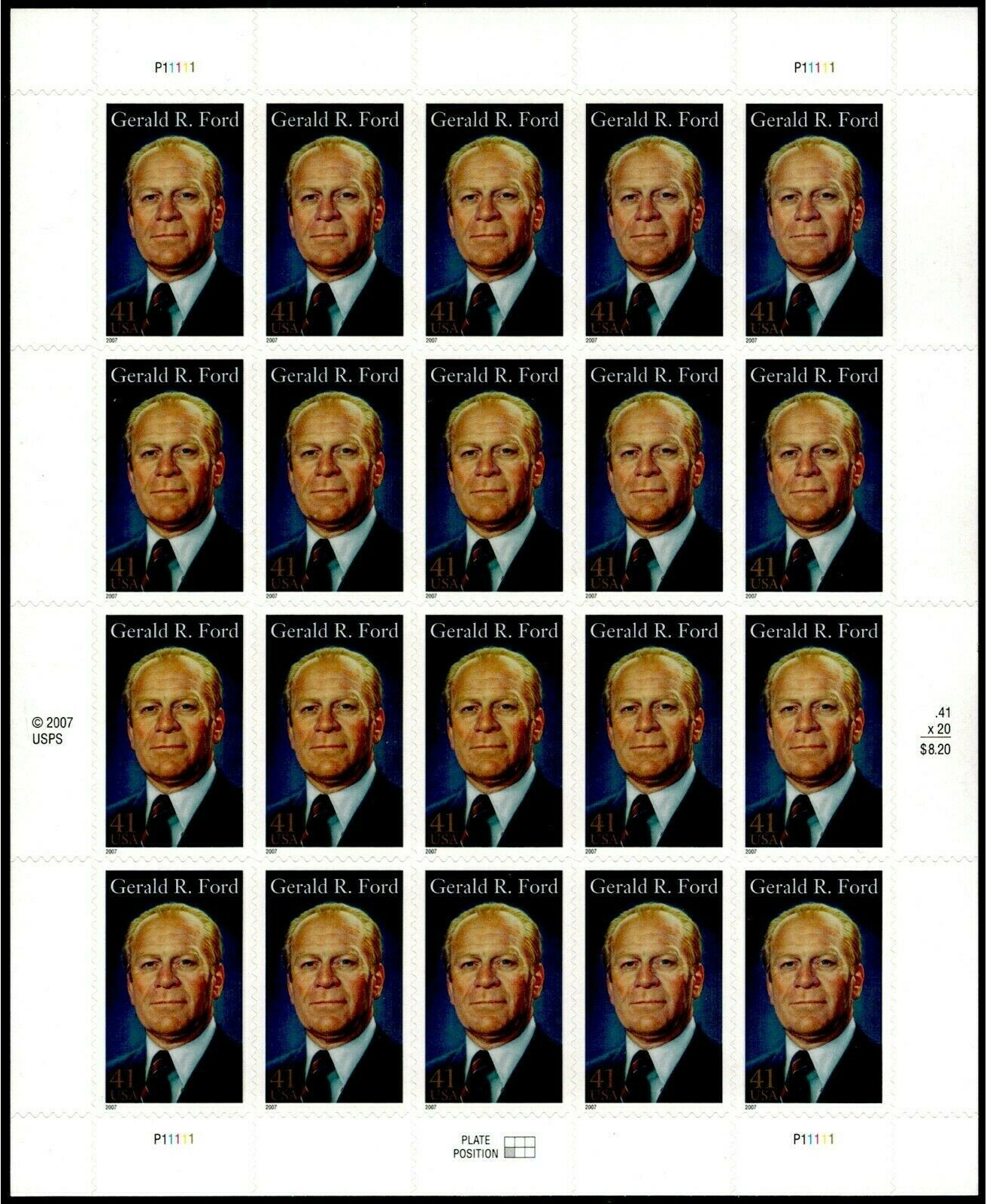 Gerald Ford President Sheet of Twenty 41 Cent Postage Stamp Scott 4199