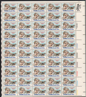 Glenn Curtis Sheet of Fifty 35 Cent Airmail Postage Stamps C100