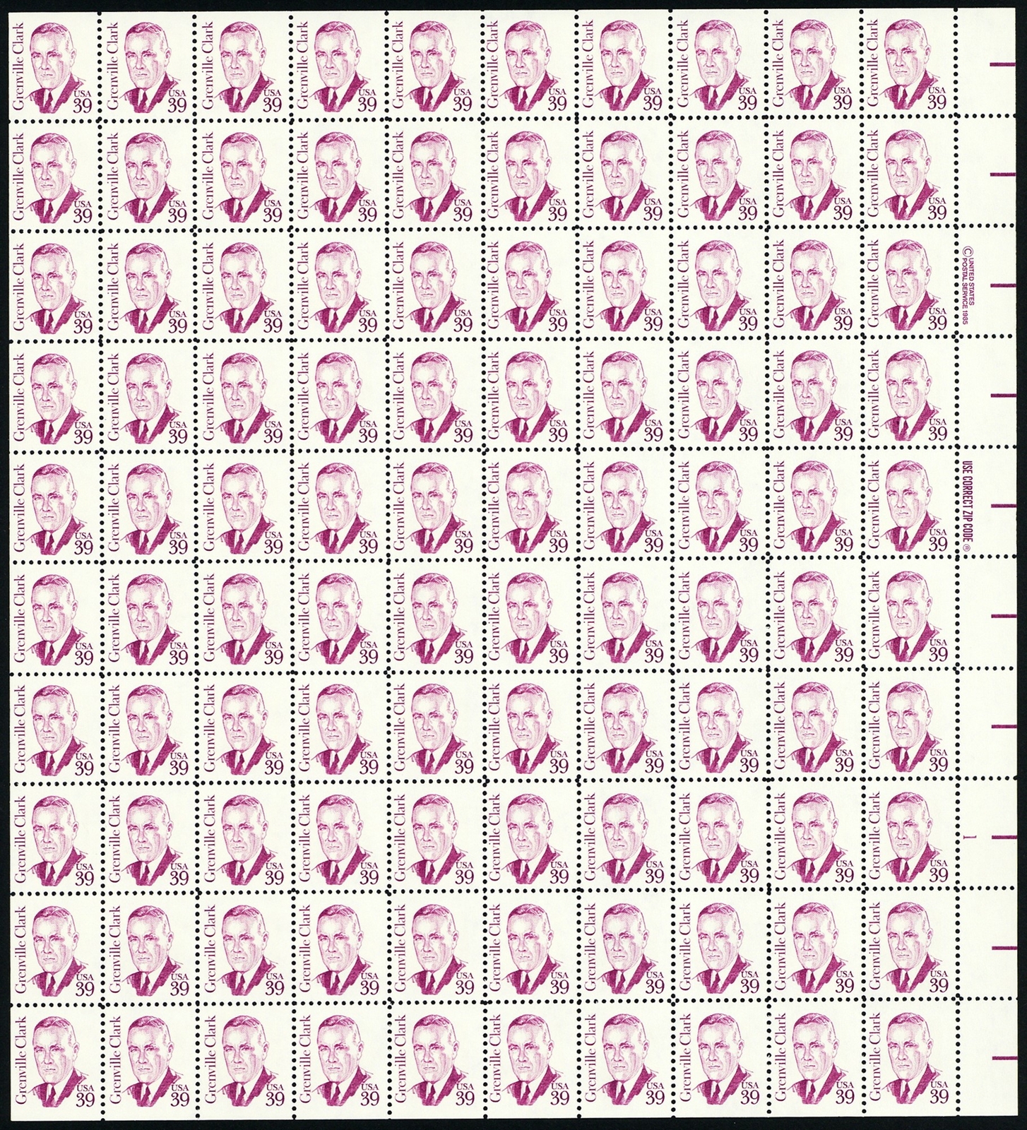 Glenville Clark Sheet of One Hundred 39 Cent Postage Stamps Scott 1867