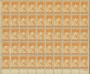 Gold Star Mothers Complete Sheet of Fifty 3 Cent Postage Stamps Scott 969
