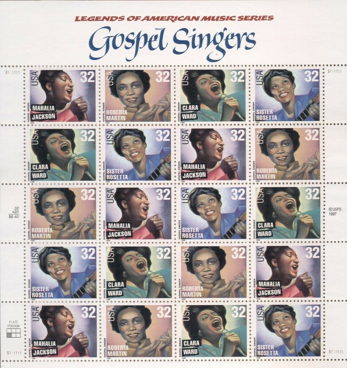 Gospel Singers Sheet of Twenty 32 Cent Postage Stamps Scott 3216-19
