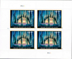 Grand Island Ice Caves $26.35 Express Mail Pane of Four Stamps Scott 5430