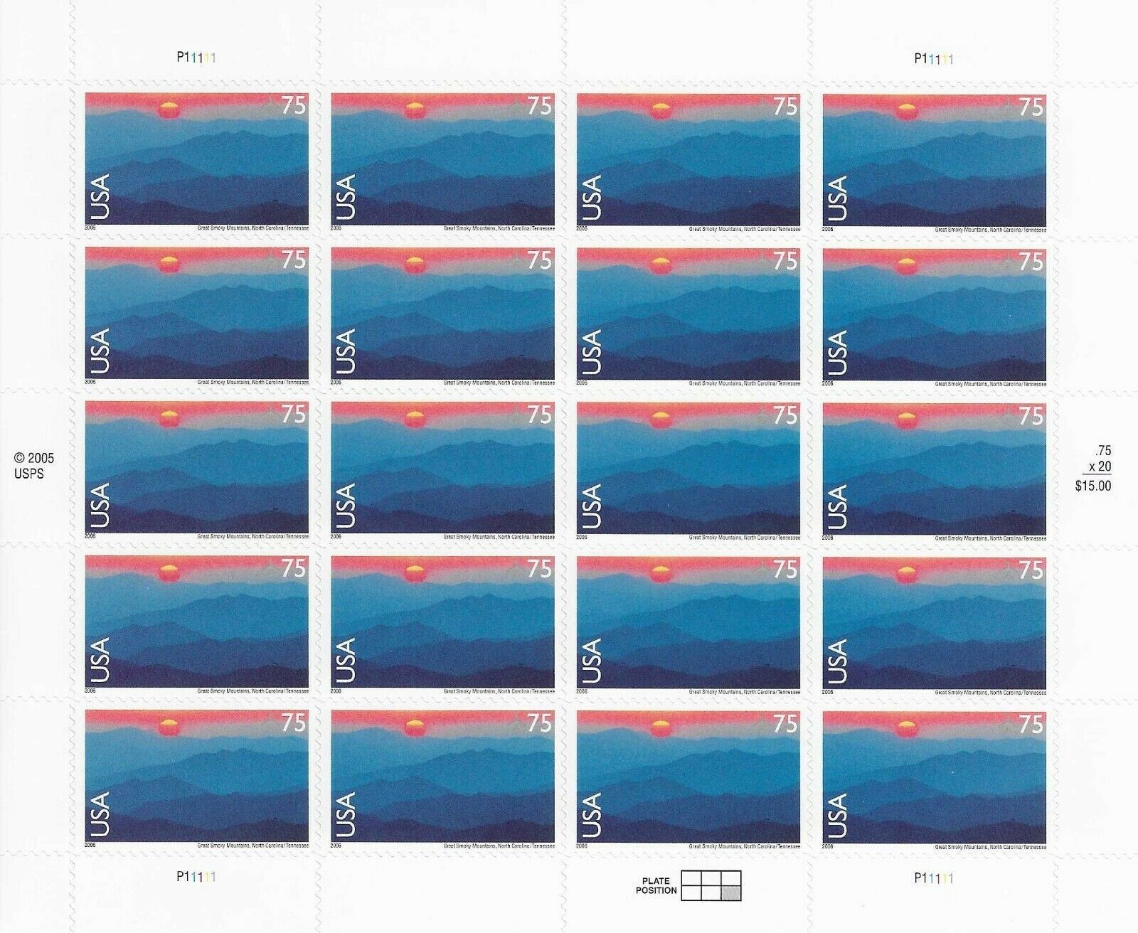 Great Smoky Mountains Sheet of Twenty 75 Cent Airmail Stamps Scott C140