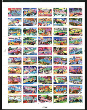 Greetings from America Sheet of 50 34¢ Stamps Scott 3561-3610 - Stuart Katz